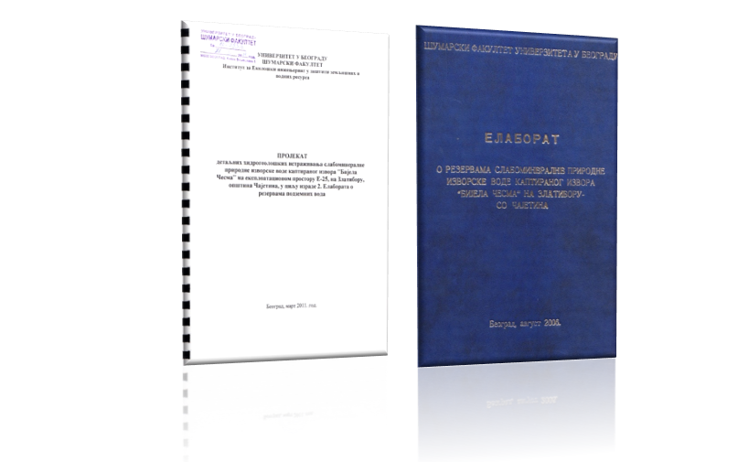 Elaborati o rezervama podzemnih voda objedinjuju istraživanja koja su izvedena po projektu i rezultate režimskih osmatranja podzemnih voda u cilju njihove overe kao rezervi koje se mogu koristiti. Na osnovu pozitivno ocenjenog Elaborata, od nadležnog Ministarstva dobija se potvrda o overenim rezervama podzemnih voda. Elaborati o rezervama podzemnih voda se izrađuju na svakih 5 godina.